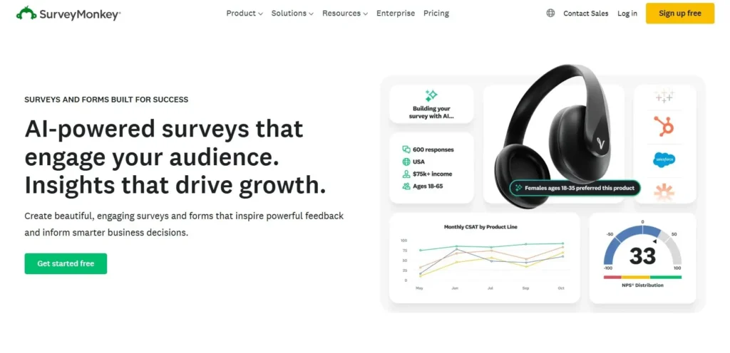 • SurveyMonkey can be pricey but offers enterprise-grade functionality.
